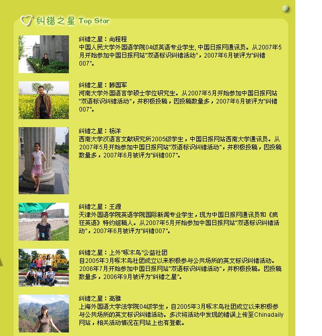outstanding contributors (almost all are university students) - the so-called